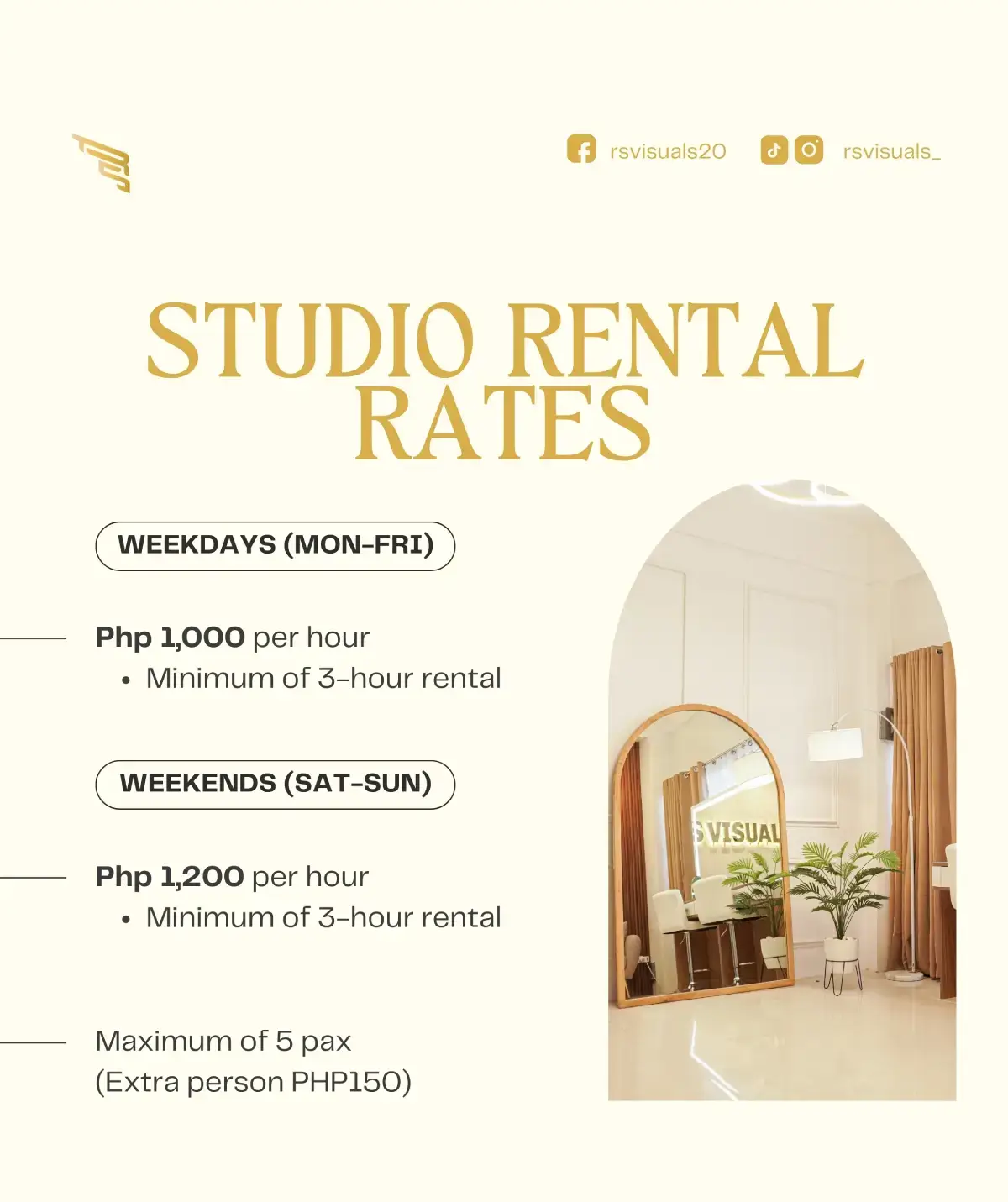 Yes, we offer studio rental for Php2500 (weekday rate) or Php3000 (weekend rate), good for 3 hours.