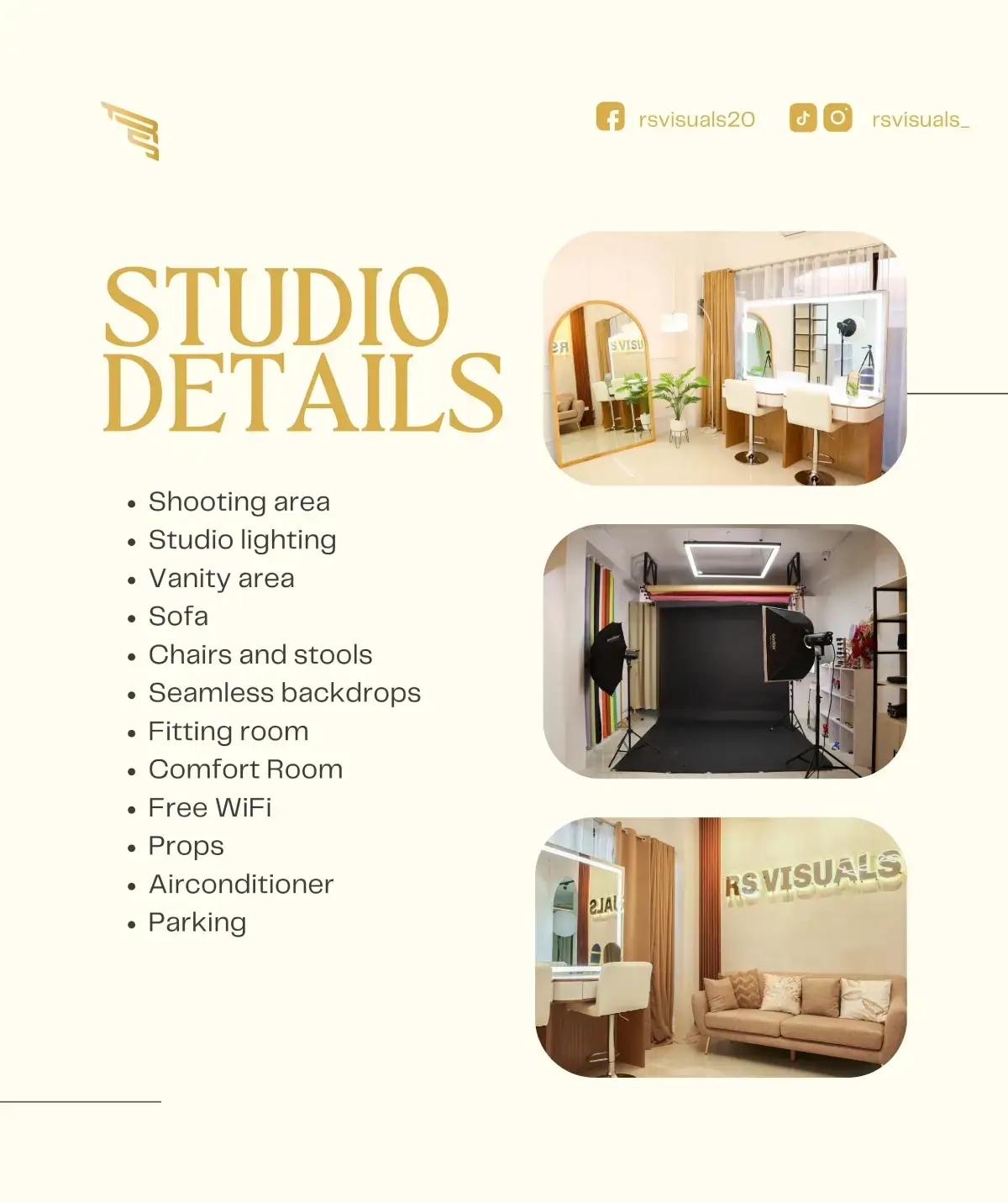 Welcome to Studio B! Our biggest studio at RS Visuals — designed for barkada shoots, family portraits, and professional studio rentals. With spacious layouts and versatile setups, Studio B is the perfect place to bring your creative vision to life.